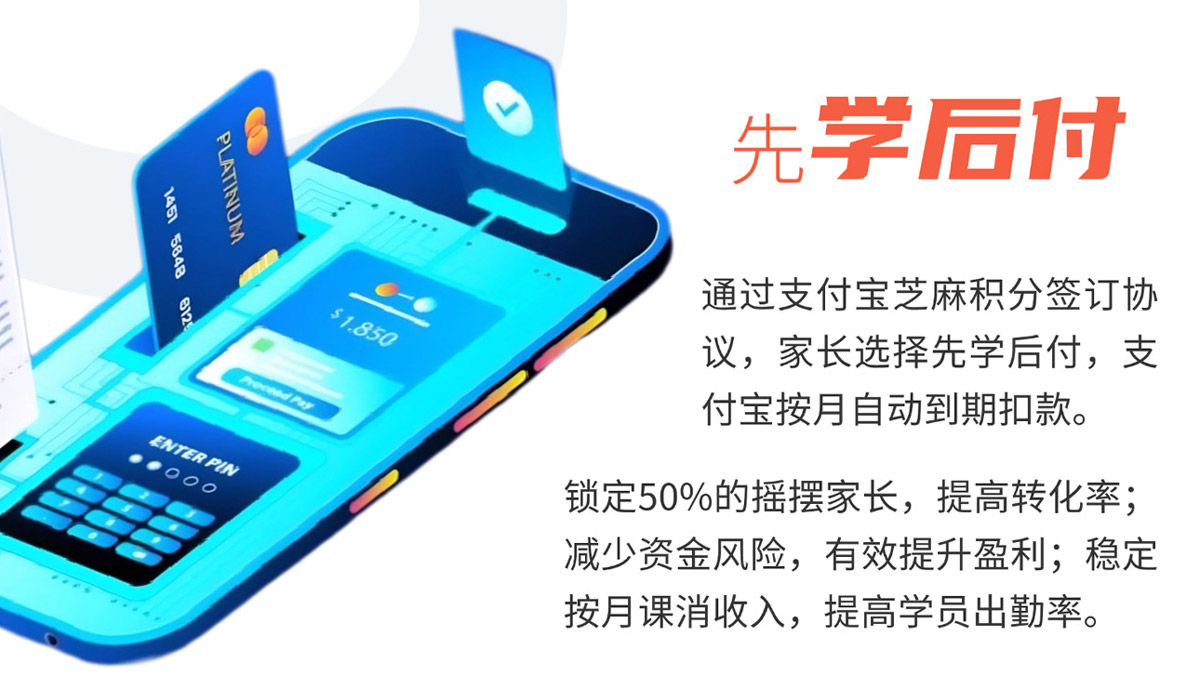 通过与周边商铺共建销售渠道平台,客户支付宝扫码领取红包,随领随用抵扣消费金额;7日内带孩子到校区完成体验课即可。(若未完成体验课,红包会退回)精准锁客,长期持续上门。